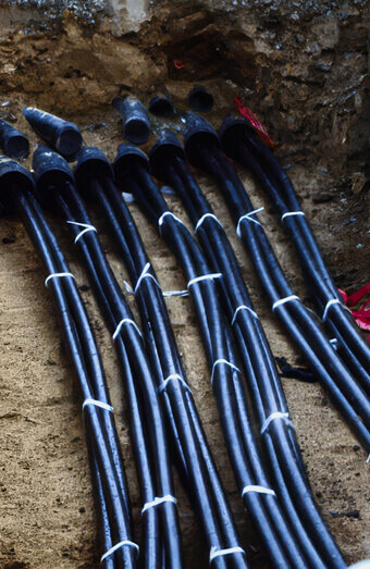 We connect new properties to the electricity network using underground service cables from the nearest pillar or pit, handling all trenching, conduit installation, and cable terminations.